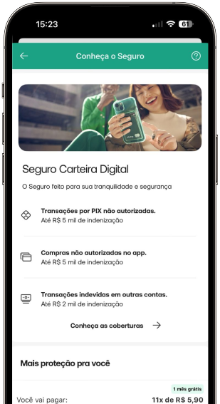 - Cobertura para morte ou invalidez por acidente de até R$ 5.000;