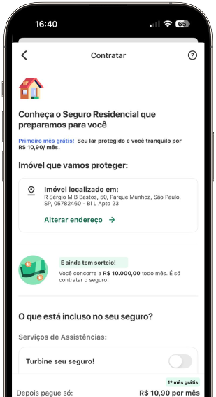 - Contratação 100% via app PicPay, sem vistoria e com pagamento digital.